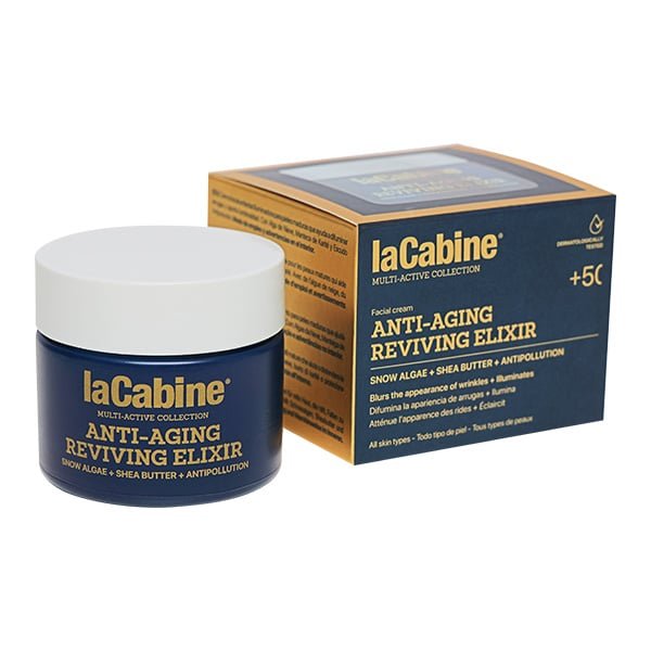 Crema antiedad especialmente indicada para pieles maduras que luchan contra los 3 principales signos de la edad: manchas, falta de luminosidad y arrugas profundas.Una fórmula única con Polvo de Alga de Nieve, Flor de Margarita, Manteca de Karité, Perlas Soft-Focus y Escudo Antipolución. Lucha eficazmente contra los principales signos de edad en la piel madura: manchas, falta de luminosidad y arrugas profundas. Utilízala junto a tus ampollas laCabine Anti-aging Reviving Elixir para tener el mejor dúo antiedad-luminosidad para tu piel. 50ml. | Todo tipo de pieles | Uso Diario | Textura nutritiva sin perfume de rápida absorción