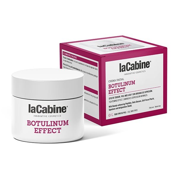 Crema antiarrugas para un efecto “planchado” y de relleno de arrugas, sin inyecciones.Una f√≥rmula √∫nica con P√©ptidos Embellecedores, Escualano, Perlas Soft- Focus y Escudo Antipoluci√≥n. Innovadora tecnolog√≠a inspirada en la acci√≥n de las inyecciones alisadoras de arrugas pero de acci√≥n t√≥pica. Ayuda a alisar, rellenar y suavizar las arrugas, especialmente las de expresi√≥n, para un verdadero “efecto planchado” de la piel. Util√≠zala junto a tus ampollas laCabine Botulinum Effect para tener el mejor d√∫o antiarrugas para tu piel. PASO 1Con el rostro limpio, aplica tu ampolla de tratamiento habitual para potenciar los efectos de tu crema.PASO 2A continuaci√≥n, aplica d√≠a y noche tu crema realizando un suave masaje por todo el rostro.