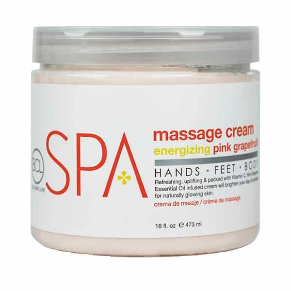 Perfecta como hidratante o medio de masaje esta crema deja la piel profundamente hidratada y radiante. Formulada con ingredientes orgánicos certificados como el aceite de argán de Marruecos /aceite de oliva /extracto de algas marinas y extracto de fruta de limón. La crema de masaje BCL SPA® está cargada de antioxidantes y vitaminas para una piel sana. Refrescante estimulante y lleno de vitamina C esta crema con infusión de aceite esencial de toronja rosa alegrará su día y revitalizará la piel que brilla de forma natural. Úselo como el paso final en uno de nuestros tratamientos orgánicos exclusivos o solo como un hidratante de la piel para manos pies y cuerpo.