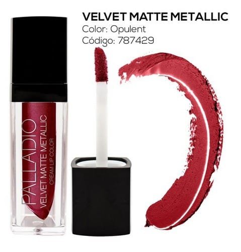 Hidratante. suave. con acabado mate y con profundidad en el color en formato gloss. El aplicador permite un acabado impecable. Diseñado con pigmentos metálicos de larga duración y ofreciendo una textura mate aterciopelada. el nuevo Velvet Metallic te hará resaltar luciendo la última moda en labiales. Fórmula enriquecida con Té Verde y Vitamina E.Tono Opulent.