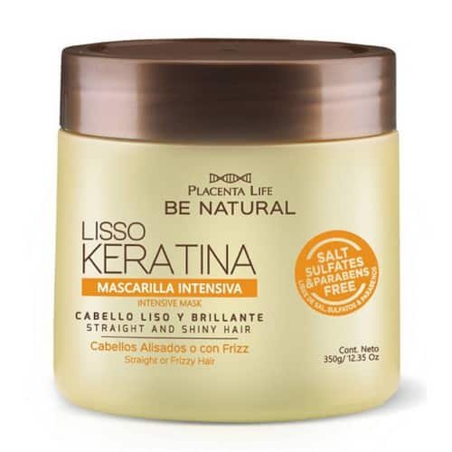 350 gLa l√≠nea Lisso Keratina de be Natural es un ritual de alineamiento capilar a base de Keratina que evitar√° que tu pelo se encrespe d√°ndole docilidad y un liso prolongado. La keratina actuar√° directamente en la fibra capilar equilibrando la hidrataci√≥n natural y reparando los da√±os producidos por el alisado y otros tratamientos. No contiene sulfatos ni parabenos.Cruelty Free – No testado en animales.‚Ä¢ Mascarilla Lisso Keratina de Be Natural actuar√° directamente en la fibra capilar equilibrando la hidrataci√≥n natural y reparando los da√±os producidos por el alisado y otros tratamientos.Modo de empleo: Aplicar sobre cabello limpio y h√∫medo desde la ra√≠z hasta las puntas. Dejar actuar unos 5 minutos y enjuagar con abundante agua.