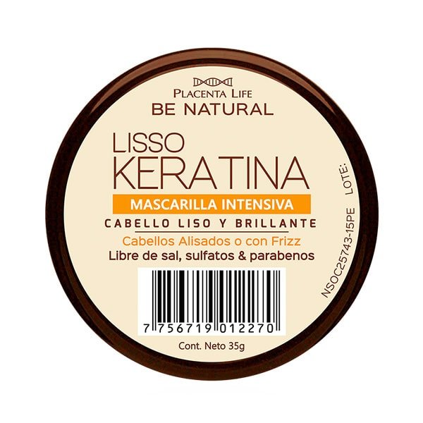 Cabello liso y brillante alisados o con frizz Ritual de alineamiento capilar a base de KERATINA que actúa directamente sobre la fibra capilar, equilibrando la hidratación natural del cabello, reduciendo el frizz, brindando una sensación de docilidad y liso prolongado. Mascarilla Intensiva 35 gTratamiento Intensivo de acción inmediata, a base de KERATINA, que repara los daños producidos por el alisado. Equilibra la hidratación en el cabello, reduciendo el molesto frizz, brindando una sensación de docilidad y liso prolongado. Libre de Sal, Sulfatos y Parabenos.
