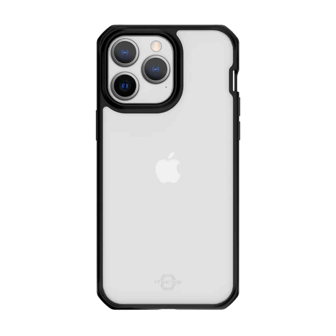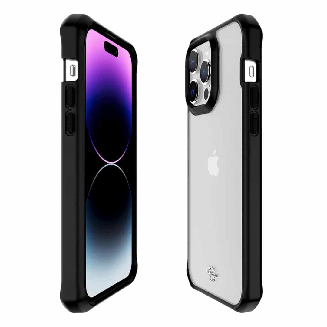ITSKINS CASE FOR APPLE IPHONE 14 PRO MAX ( 6.7″ ) HYBRID R // SOLID, PLAIN BLACK AND TRANSPARENT.