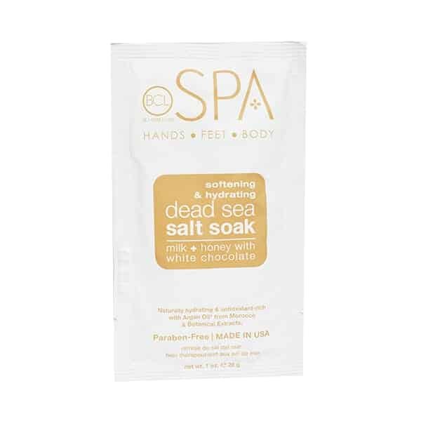 La sal del Mar Muerto es la sal de mejor calidad que puedes encontrar en el planeta. Lo hemos combinado con preciosos ingredientes y aceites orgánicos certificados para crear un remojo desintoxicante potente pero suave. La leche y la miel trabajan juntas como un humectante rico en nutrientes que promueve la retención de humedad en la piel. El chocolate blanco rico en antioxidantes ayuda a combatir el daño de los radicales libres del sol y de los contaminantes ambientales. Mezclado con aceite de argán de Marruecos /vitamina E /aceite de menta y extracto de flor de árnica. Este es el primer paso en nuestra experiencia orgánica exclusiva para manos pies y cuerpo. * Paso 1 de nuestro sistema de 4 pasos.sachet 1oz.