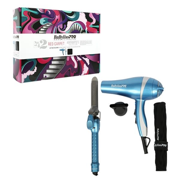 BaByliss Pro Nano Titanium Holiday Box No.2 Red Carpet – Pinza Rizadora + Secadora de 2000 vatios + Mat de SiliconaPinza rizadora BaBylissPRO Nano Titanium ™ de 1 pulg• Sol-Gel Nano Titanium ™ / barril de cerámica• 50 configuraciones de calor de hasta 450 ° F• El botón Turbo Heat® aumenta instantáneamente el calor• Cable giratorio sin enredos Secadora BaBylissPRO Nano Titanium ™• Tecnología Nano Titanium ™• 2000 vatios• Iónico• 6 configuraciones de calor / velocidadMat térmico de silicona BaBylissPRO• Protege las superficies de las herramientas de peinado en caliente: hasta 480 ° F• Correa para envolver el tapete para un almacenamiento seguro